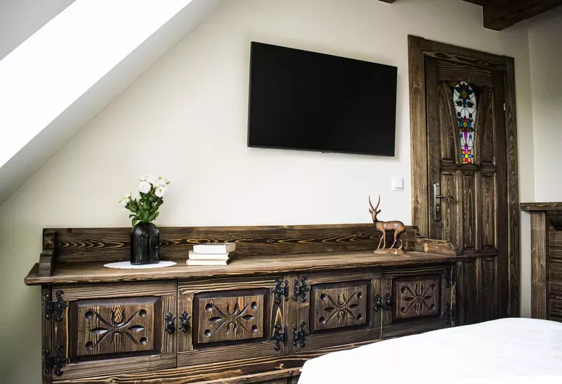 Oferujemy Państwu pokoje, oraz apartamenty wykończone z dbałością o każdy szczegół, z duszą i pasją. Wyposażone w łóżka małżeńskie, oraz jednoosobowe, stolik z fotelami, stoliki nocne, szafy i lustra. Wszystkie pokoje mają własną łazienkę z pełnym węzłem sanitarnym - prysznic, umywalka, toaleta, dodatkowo jest czajnik, suszarka, w niektórych pokojach są lodówki, szampon do mycia, kawa, herbata. W pokojach znajduje się również telewzior.